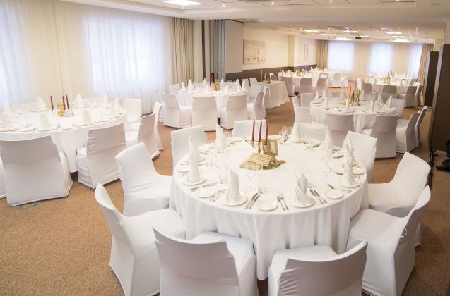 • Банкетная рассадка: круглые столы на 6-8-10 гостей, вместимостью от 40 до 100 гостей