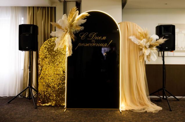 • Возможность зонирования пространства, место для сцены, фотозоны, танцев и других активностей